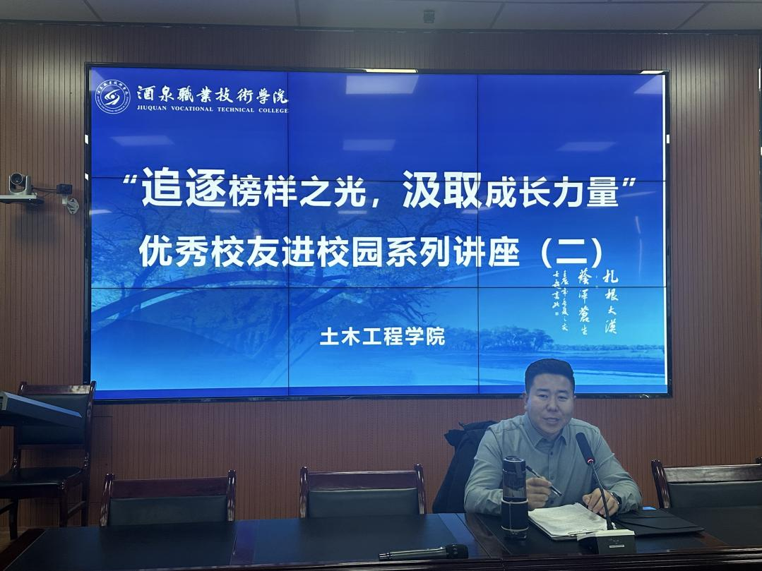 为加强学院与校友之间的联系,帮助在校学子提振专业学习信心,彰显优秀校友的榜样力量,2024年12月27日下午,土木工程学院在弘毅楼闻道厅、行知楼208教室开展了“追逐榜样之光,汲取成长力量”优秀校友进校园系列活动。甘肃省天脉建设工程咨询有限公司总经理李永亮、甘肃润峰顺建筑工程有限公司项目经理高祥两位优秀校友应邀来学院参加活动。