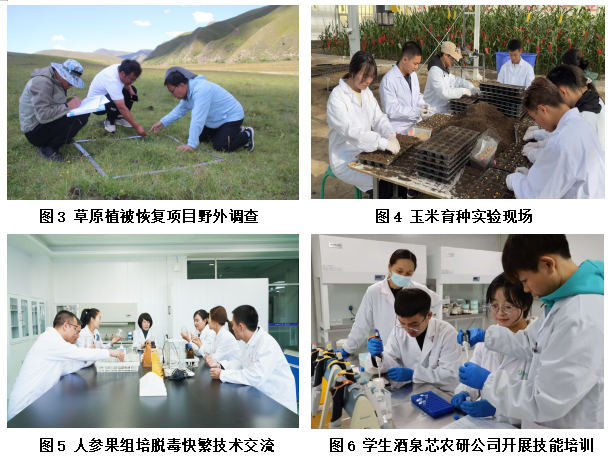 横向技术服务方面:增强社会服务功能,提升专业服务产业发展的“贡献度”。联合敦煌种业、同庆种业、华美种业等企业,合作实施玉米育种实验、人参果组培脱毒快繁、向日葵土壤营养检测、种质资源检测鉴定等横向技术服务4项,累计到账6.48万元。与甘肃草地科技检测中心合作实施《草原植被恢复项目检测》,出具检测报告46份;与酒泉芯农研公司开发科教融汇实训项目10个,面向学生开展技能培训鉴定35人次。