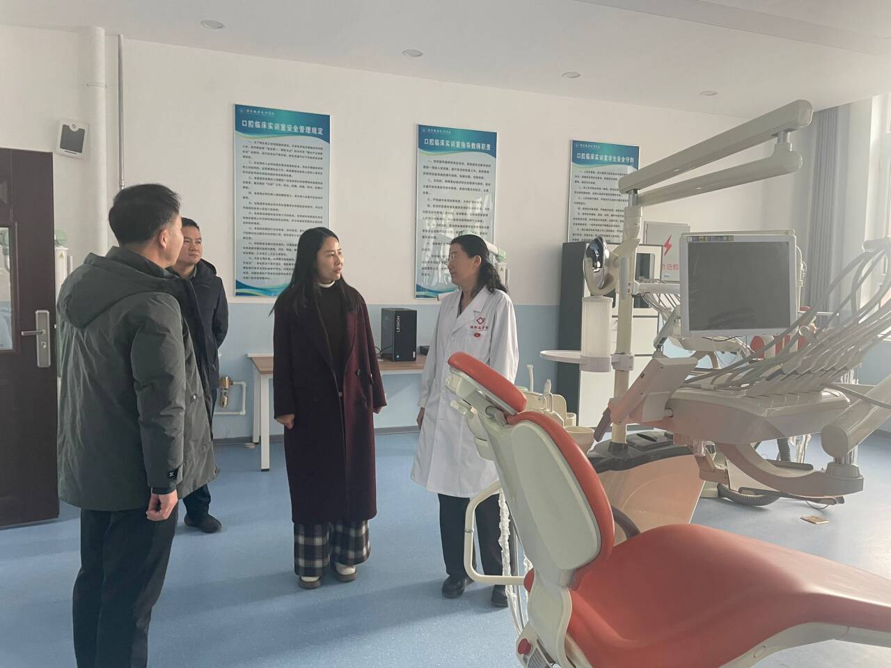 医学院党支部书记范玉敏介绍了医学院的发展历程、愿景目标、战略规划以及近年来取得的成绩,带领乔总一行参观了实验实训室,参观过程中介绍了医学院人才培养模式、实训室建设情况、实习就业合作单位等情况。