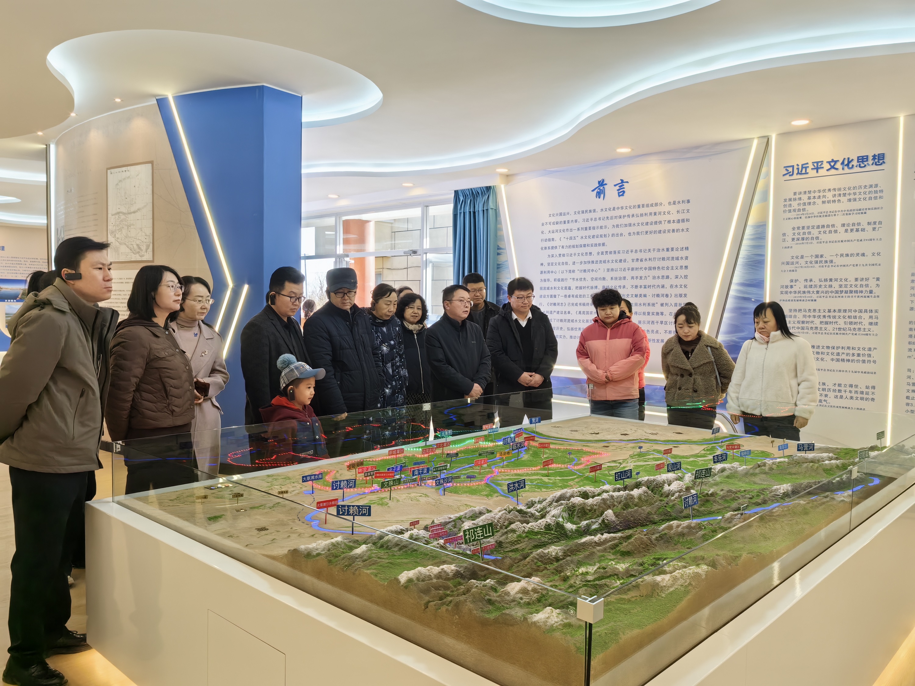 在讨赖河流域水资源利用中心北干渠水管所党支部书记王云泽的带领下,大家首先来到了讨赖河流域水文化展览厅,了解了河西干旱区讨赖河流域水利开发历史、水利工程、水资源管理、生态治理以及水科普知识,观看了讨赖河流域屯田水利遗产宣传片,深刻感受到在党的领导下,水利人艰苦奋斗、治水兴水,创造出的辉煌的成就。