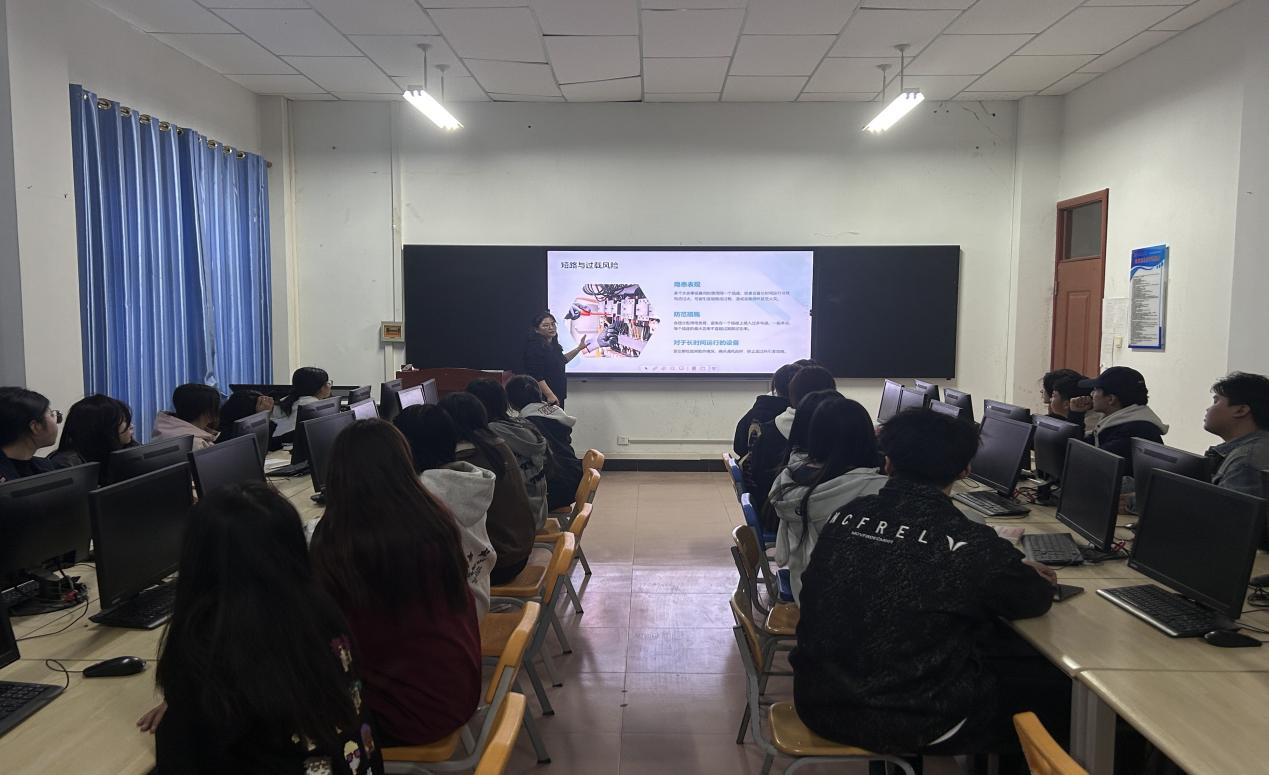 安全教育培训课上,授课教师以近期安全事件案例为切入点,结合各专业课程及实训室特征,围绕“如何预防实训室安全事故发生”和“实训室突发安全事件应急处理措施”两大主题,重点对水电安全、机械安全、消防安全、应急处理措施四个方面开展教育培训。