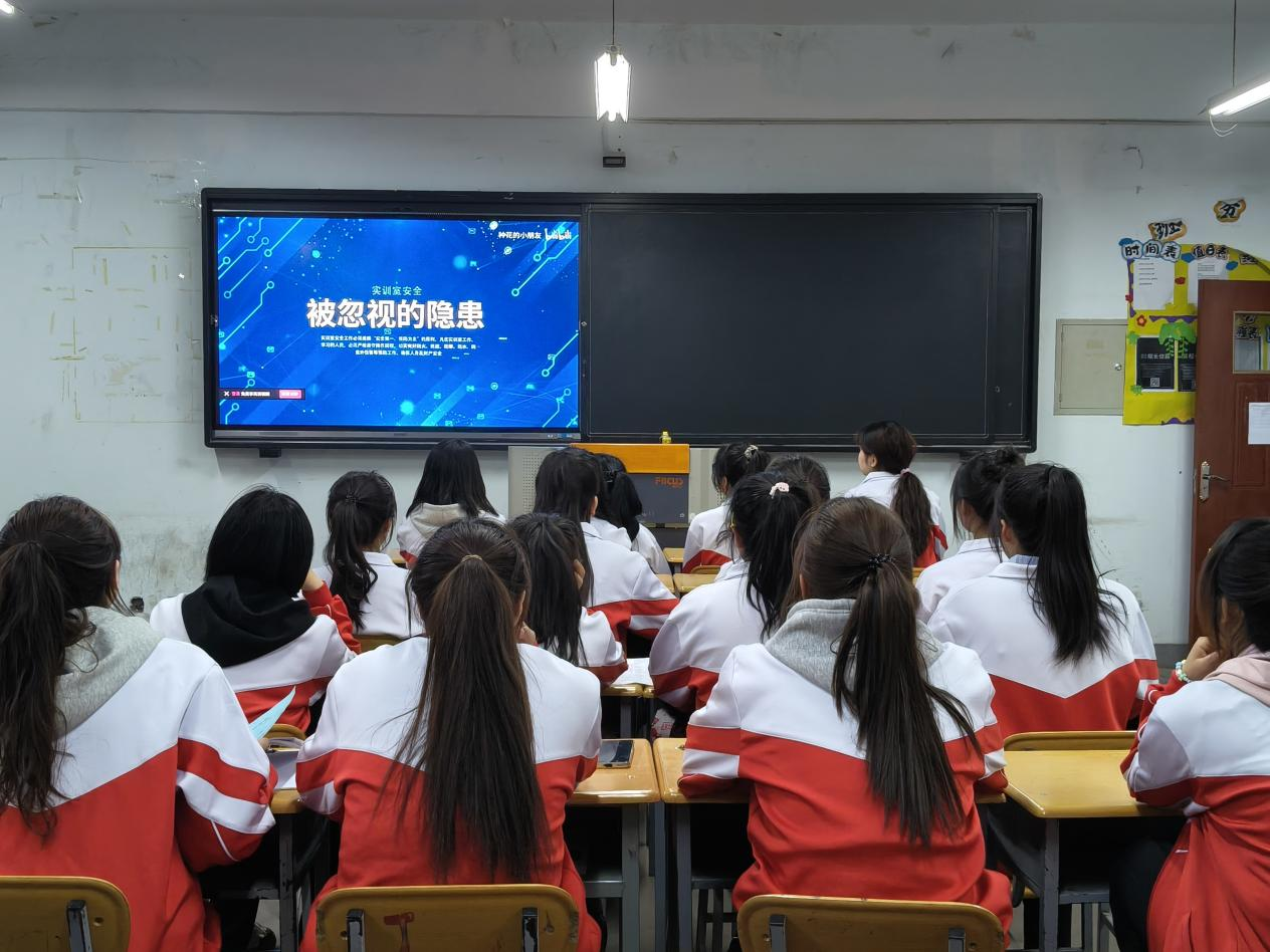 主题班会中,各班级开展专题自学,通过班级负责人领学实训室安全管理制度、集体观看实训室安全事故视频、小组讨论实训室违规操作事故后果,使学生进一步认识到实训室潜在隐患及预防的重要性。