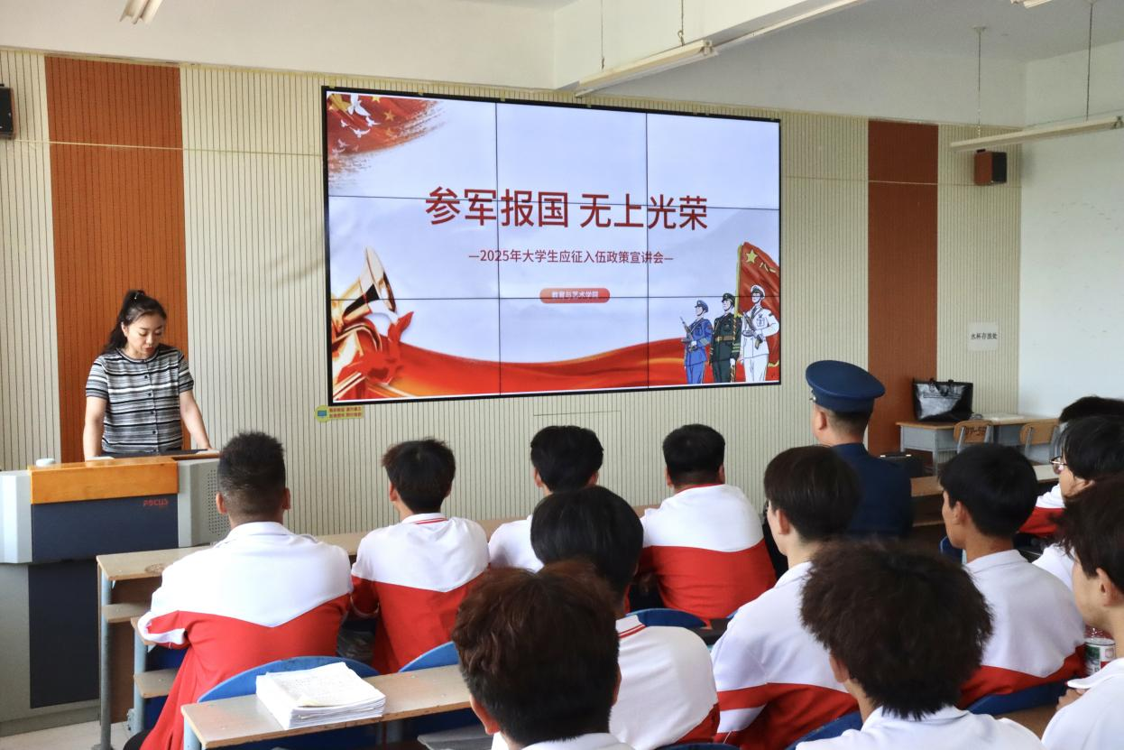 为深入贯彻落实国家征兵工作决策部署,积极响应强国强军号召,切实推进大学生应征入伍工作,帮助青年学子全面了解应征政策及实施流程,引导大学生投身军旅报效国防增强学生参军报国的责任感和使命感,营造依法参军报国的浓厚氛围。6月20日,教育与艺术学院开展“参军报国 无上光荣”2025年大学生应征入伍政策宣讲会,会议由副院长段君妍主持,学院2023级、2024级全体男生参加。