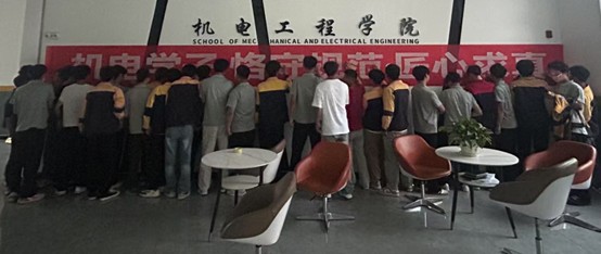 同时,学院在格物楼大厅布置了醒目的“机电学子·恪守规范·匠心求真”主题承诺签名横幅。在班主任和班干部的带领下,各班级学生有序前往签名现场,同学们郑重地在横幅上签下自己的名字。每一个签名,不仅是对诚信考试的庄严承诺,更是机电学子对精益求精的“匠心”品格的自觉追求与实践宣言。