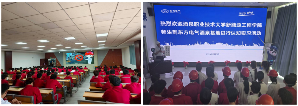 在安全培训结束后,2024级风力发电工程技术、新能源装备技术两个专业共311名学生,前往酒泉东方电气风电股份有限公司进行了参观学习。学生在企业工作人员的带领下,近距离观摩了风电设备生产流程,同时企业技术骨干围绕风电技术创新、设备运维要点展开讲解,前沿技术与实际应用的碰撞,让学生对风力发电工程技术有了全新认知。