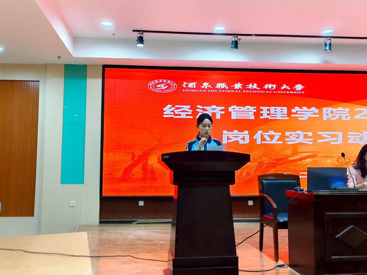 会上,2023级网络营销与直播电商班王育珍作为学生代表发言,从实习准备、实践过程到总结提升三个维度,郑重表达了圆满完成实习任务的决心,展现出学子们积极投身实践的热忱。