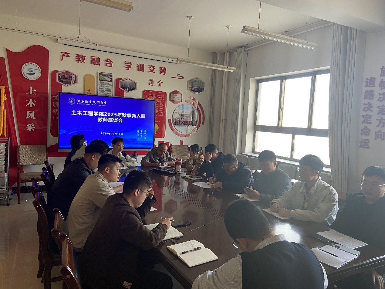 为促进青年教师专业发展,夯实学院师资队伍基础,2025年10月15日,土木工程学院组织召开青年教师座谈会。学院领导班子与近三年入职的全体青年教师共同参会,围绕教学能力提升、职业规划发展等议题展开深入交流。