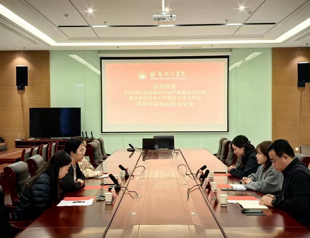 院系动态 > 正文2025年10月29日,全国现代旅游饭店行业产教融合共同体副理事长单位交流活动在潍坊理工学院顺利举行。酒泉职业技术大学旅游与烹饪学院副院长杨蕊肇、共同体秘书长杨兆永(山东蓝海集团)一行到访潍坊理工学院经济管理学院,开展深度交流与合作洽谈。