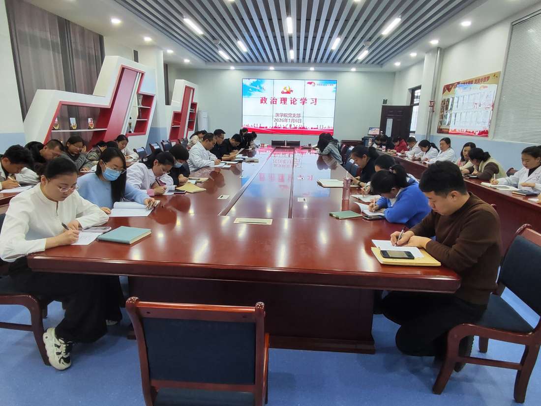 院系动态 > 正文新年伊始,为持续深入学习贯彻党的二十大及二十届四中全会精神,切实提升教职工思想政治素养与理论武装水平,统一思想、凝聚力量,医学院于2026年1月6日组织召开专题政治理论学习会议。会议由医学院党支部书记范玉敏主持,学院全体党员及教职工共同参与。
