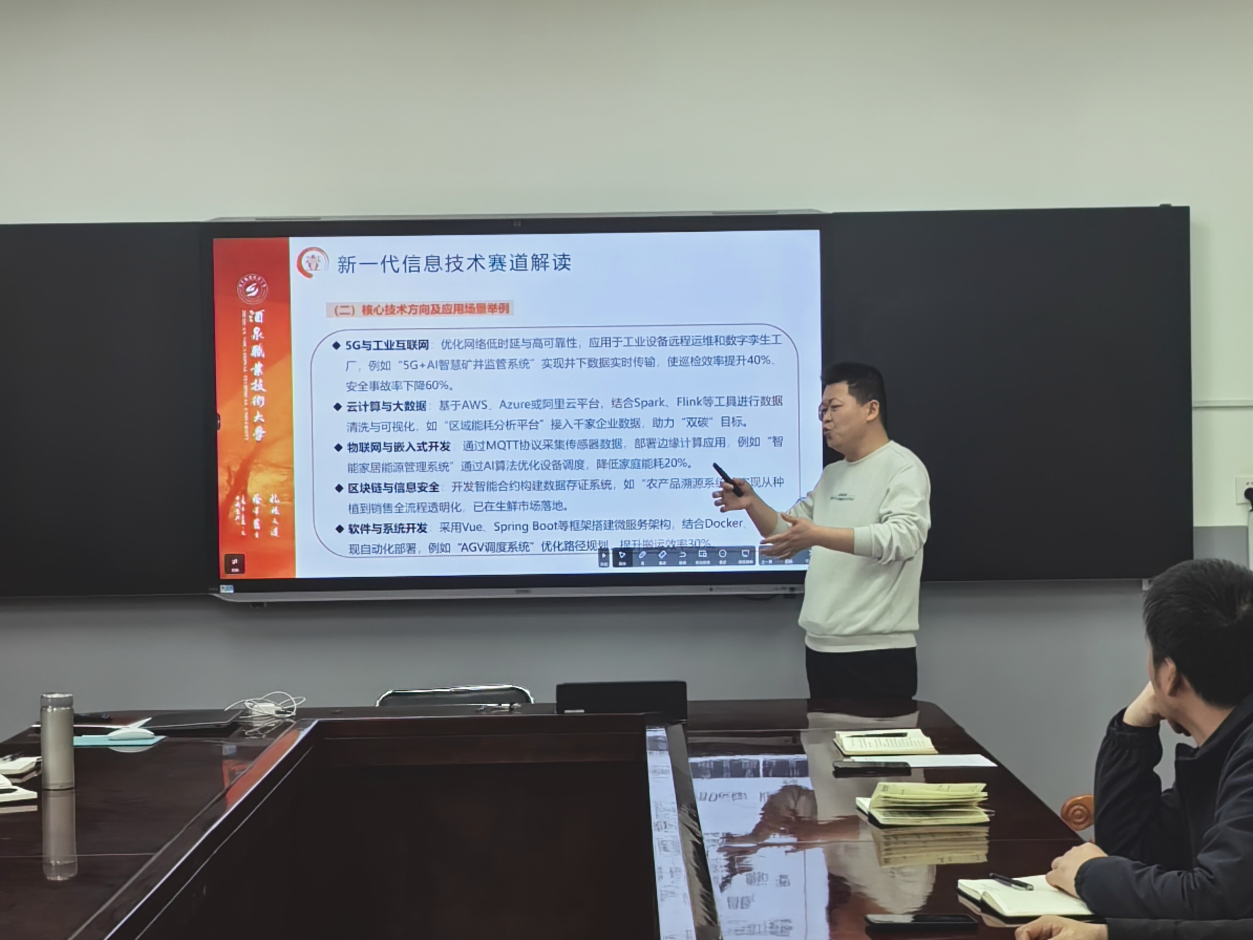 副书记刘亮、副院长张吉强等9位参加国培省培教师汇报了培训心得。他们围绕师德师风建设、人工智能技术应用、数智赋能职业教育等方面,介绍了行业最新动态、技术应用前景,并结合学院实际,就更新教学理念、推进教学改革、创新教学方法等方面提出了可借鉴的方案和措施。