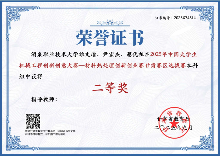 积极参与学校中国特色高水平高职学校和专业建设计划项目的申报与实施,聚焦“打造科教融汇新样板”重点任务,全面梳理重点实验室研究方向和科研资源,深度对接国家能源战略布局与地方产业升级需求,科学拟定了考核指标与详细经费预算,为项目立项与实施奠定了坚实基础。以科技赋能创新型人才培养,科研与教学协同育人,建成了集生产、教学、科研于一体的光伏储能石墨烯电热膜实验系统,为光伏工程技术专业模块化教学改革提供支持。建立学生进项目机制,首批新能源发电工程技术专业3名本科生、风力发电工程技术5名专科生参与教师科研项目。以科研项目为依托,积极参加各类创新创业项目和技能竞赛,获得中国大学生机械工程创新创意大赛二等奖1项,第十五届“挑战杯”甘肃省大学生课外学术科技作品竞赛二等奖1项、三等奖1项,第三届甘肃省大学生节能减排社会实践与科技竞赛二等奖1项、三等奖2项。