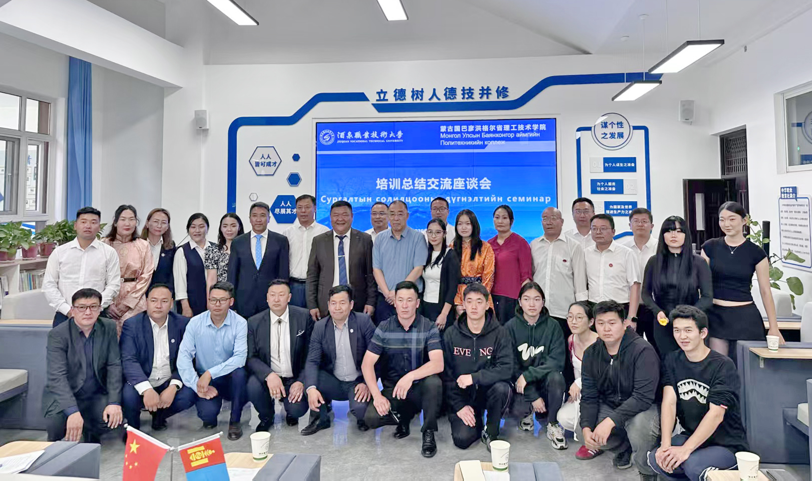 培训结束后,召开了培训成果总结会,巴特依热对先生分享了此次研学培训的收获,许军对本次活动进行了总结。双方聚焦“培黎工坊”建设,围绕蒙古国区域经济开发需求及巴彦洪格尔省理工技术学院未来发展进行了友好交流,在新能源技术、建筑工程技术、智能制造技术、信息技术应用等专业领域及数字化课程建设、学生培养、教师培训等方面达成合作意向。